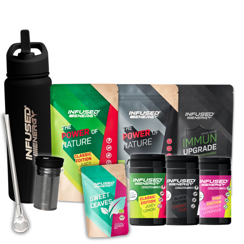 Unser Anspruch ist es, deine Leistungsfähigkeit und Gesundheit auf natürlichem Wege zu steigern. Fernab von jeglichen künstlichen Zusätzen oder chemisch modifizierten Stoffen. Mit dem System der wiederverwendbaren Infuser Bottles leistest du zudem einen Beitrag zur Verringerung von Verpackungsmüll.