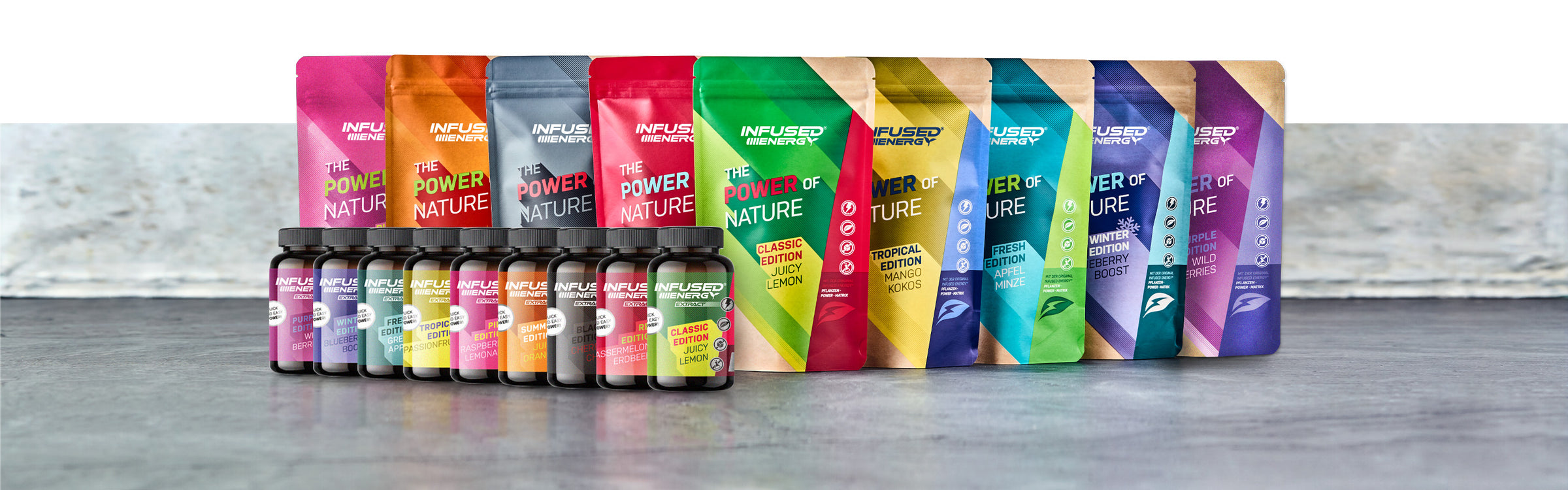 Stelle dir ein Set aus Infuser Bottle und Infused energy Editionen individuell zusammen.