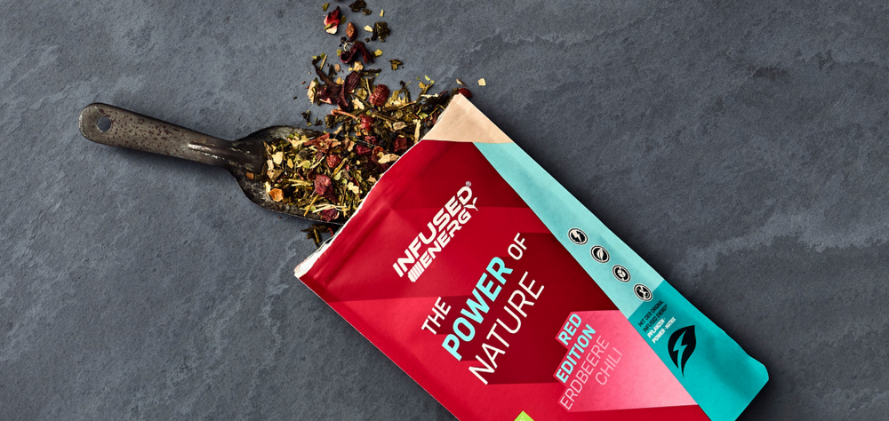 Bloody Berry: Hibiskus Rot*, Mate*, Brombeerblätter, Holunderbeeren*, Kirschen*, natürliches Brombeeraroma, Süßkraut*, Erdbeerstücke*, natürliches Kirscharoma, Himbeeren*, Matcha*, Guarana*, Ginseng Extrakt*, Guayusa Extrakt*.